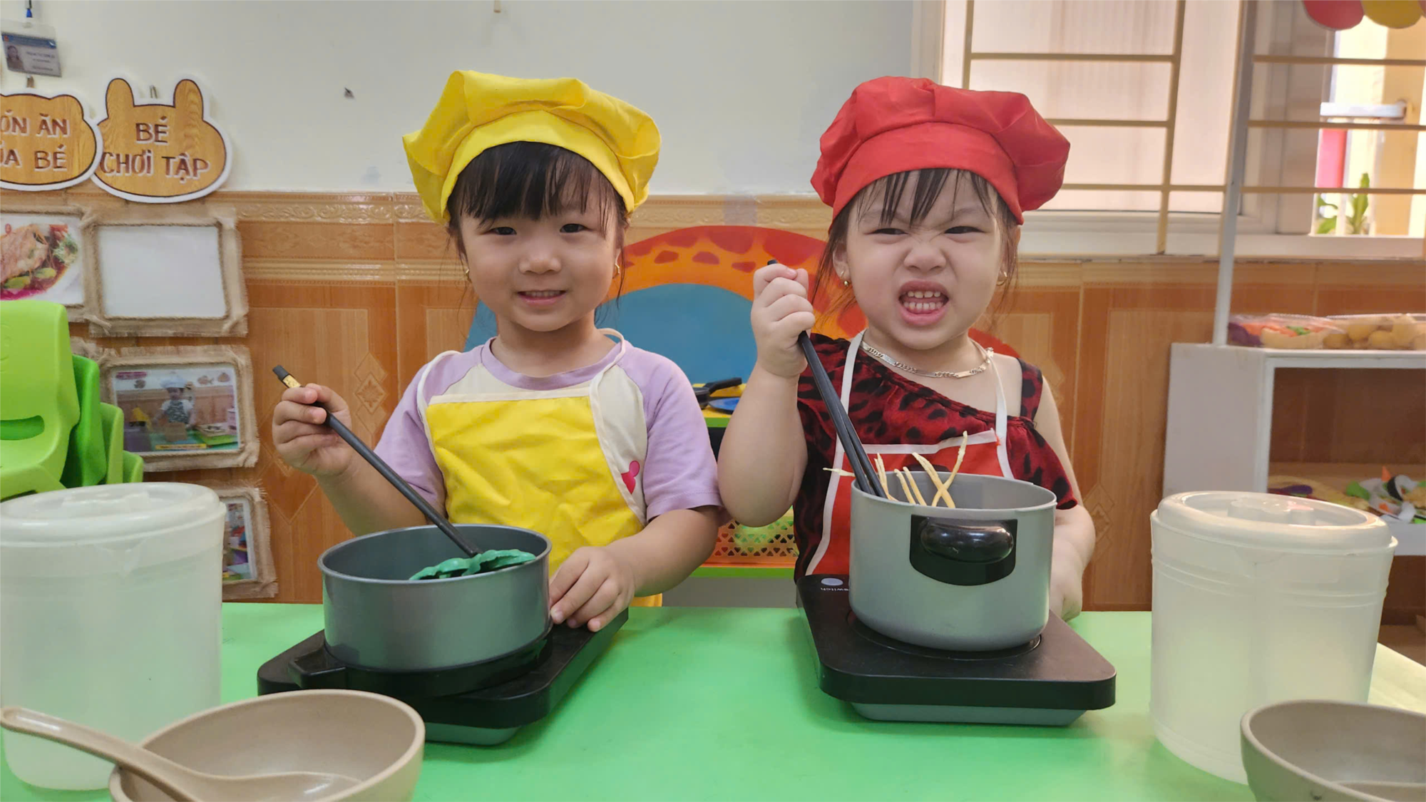 ✨ Giờ học, các bé khám phá tri thức qua những bài học sinh động, gần gũi. Các cô luôn kiên nhẫn hướng dẫn, khích lệ từng bước tiến bộ nhỏ bé của con.