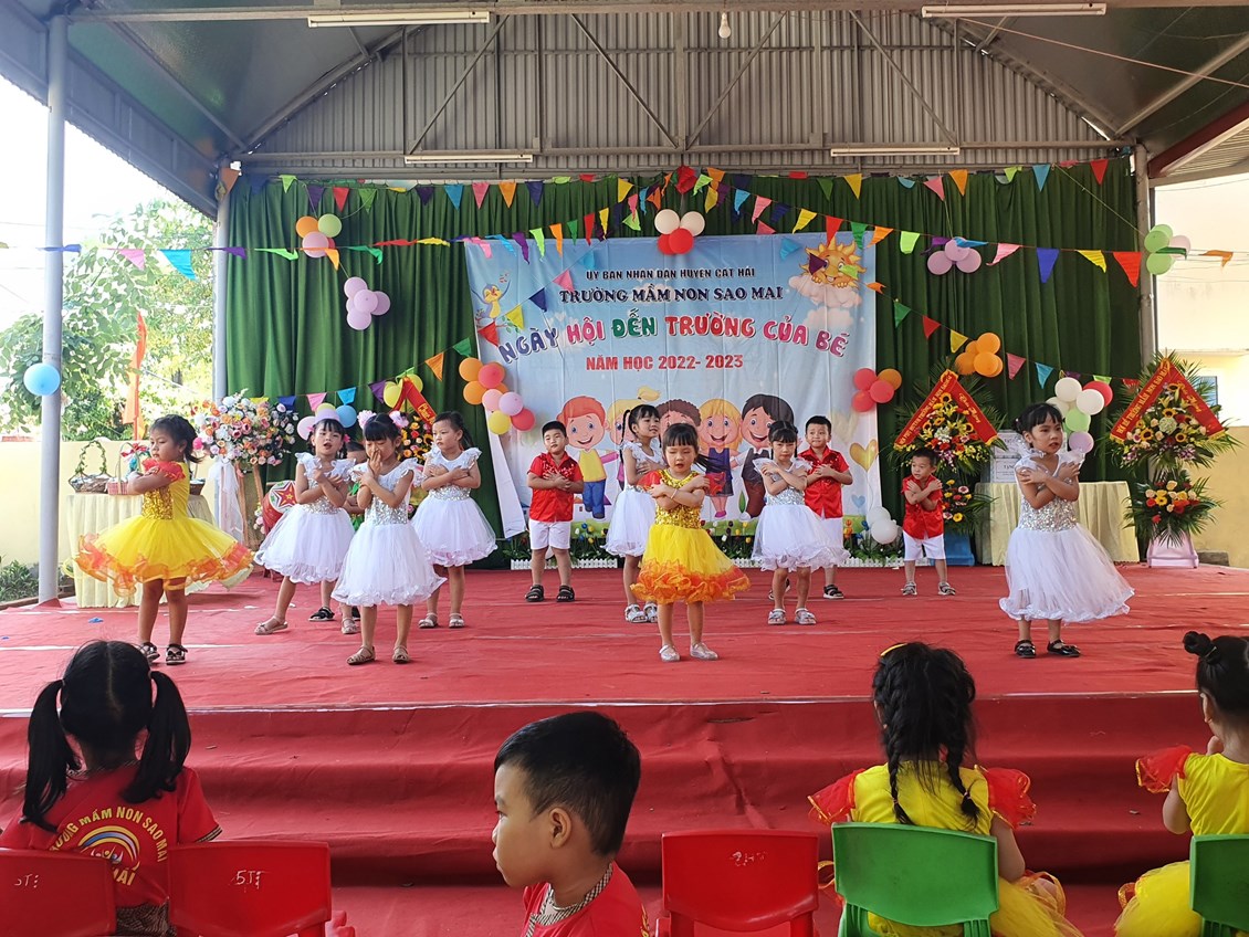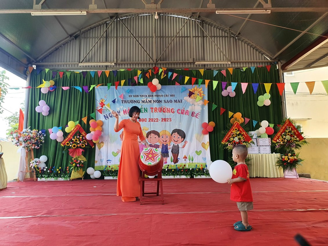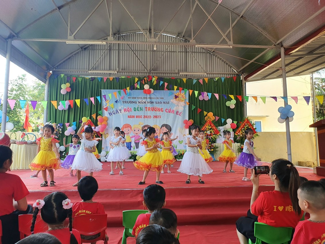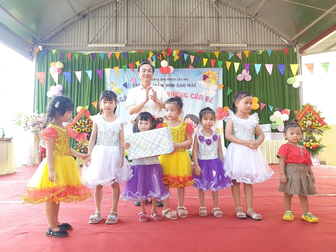 Tập thể trường MN SAO MAI cùng các bé vinh dự được đón các quý vị đại biểu đại diện cho ĐU - HĐND - UBND - UBMTTQVN xã Nghĩa Lộ; Đại diện các ban ngành đoàn thể địa phương - đại diện công ty cổ phần dịch vụ chế biến Thủy sản Cát Hải - đại diện các bậc phụ huynh trong nhà trường - đại diện hội rể - đến dự chung vui cùng cô và trò nhà trường!