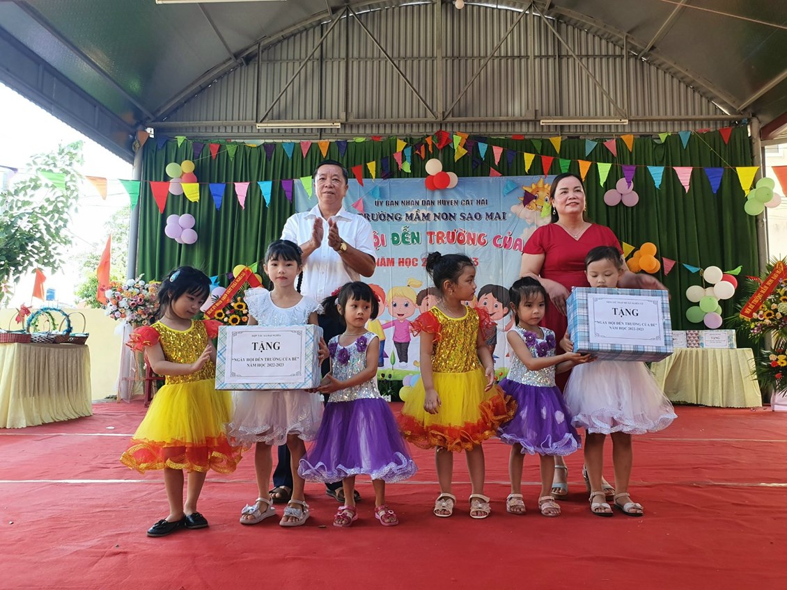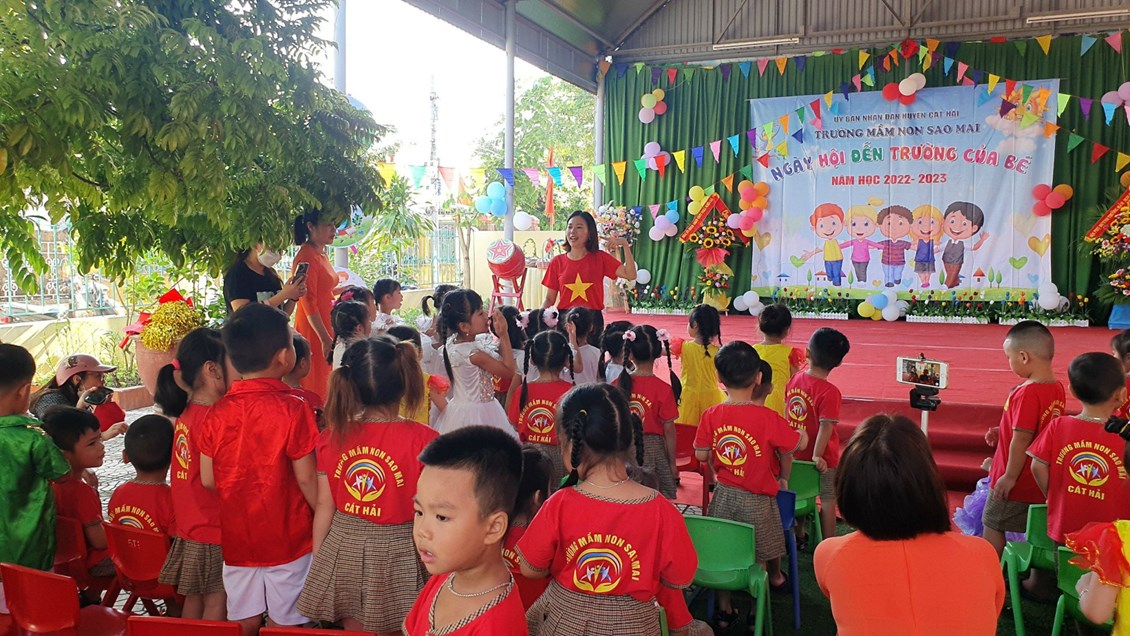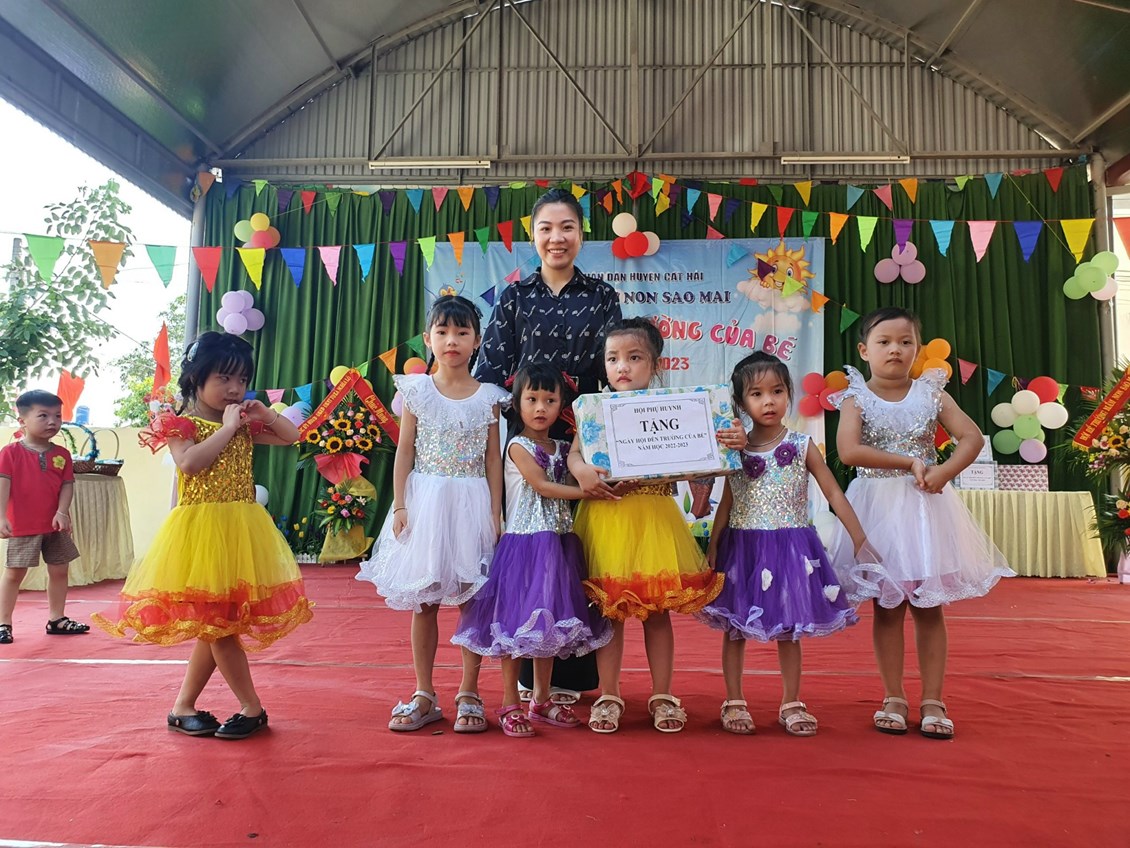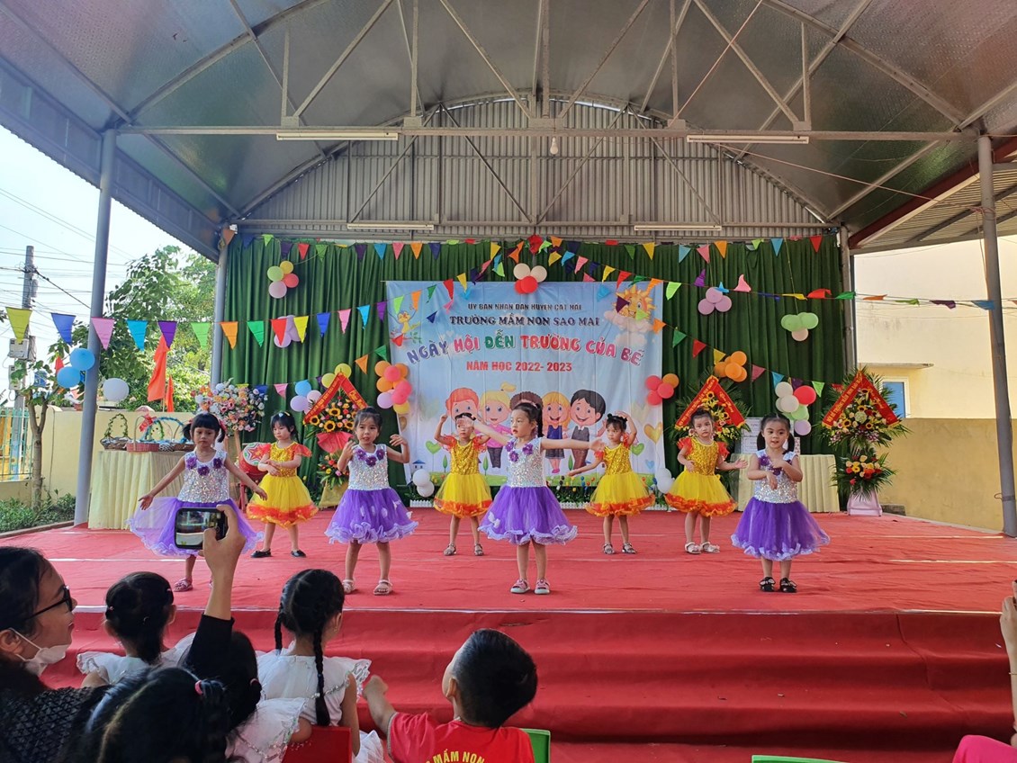 Tập thể trường MN SAO MAI cùng các bé vinh dự được đón các quý vị đại biểu đại diện cho ĐU - HĐND - UBND - UBMTTQVN xã Nghĩa Lộ; Đại diện các ban ngành đoàn thể địa phương - đại diện công ty cổ phần dịch vụ chế biến Thủy sản Cát Hải - đại diện các bậc phụ huynh trong nhà trường - đại diện hội rể - đến dự chung vui cùng cô và trò nhà trường!