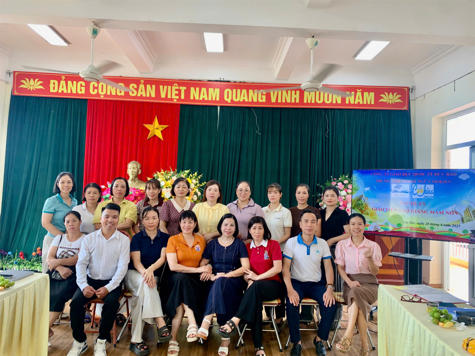 📌 Nhằm nâng cao chất lượng giảng dạy, đặc biệt là tăng cường kỹ năng hỗ trợ trẻ làm quen với tiếng Anh, Trường Mầm non Sao Mai đã tổ chức buổi tập huấn trợ giảng Tiếng Anh cho cán bộ, giáo viên.