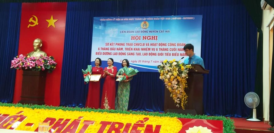 Chúc mừng đồng chí Đàm Thị Toan - Đoàn viên Công đoàn Trường Mầm non Sao Mai được nhận Giấy khen "Lao động giỏi - Lao động sáng tạo" của LĐLĐ huyện Cát Hải năm 2021.