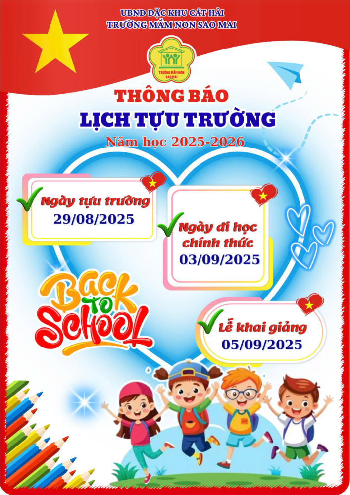 Trường Mầm non Sao Mai trân trọng gửi tới Quý phụ huynh và các bé lịch tựu trường năm học mới:
